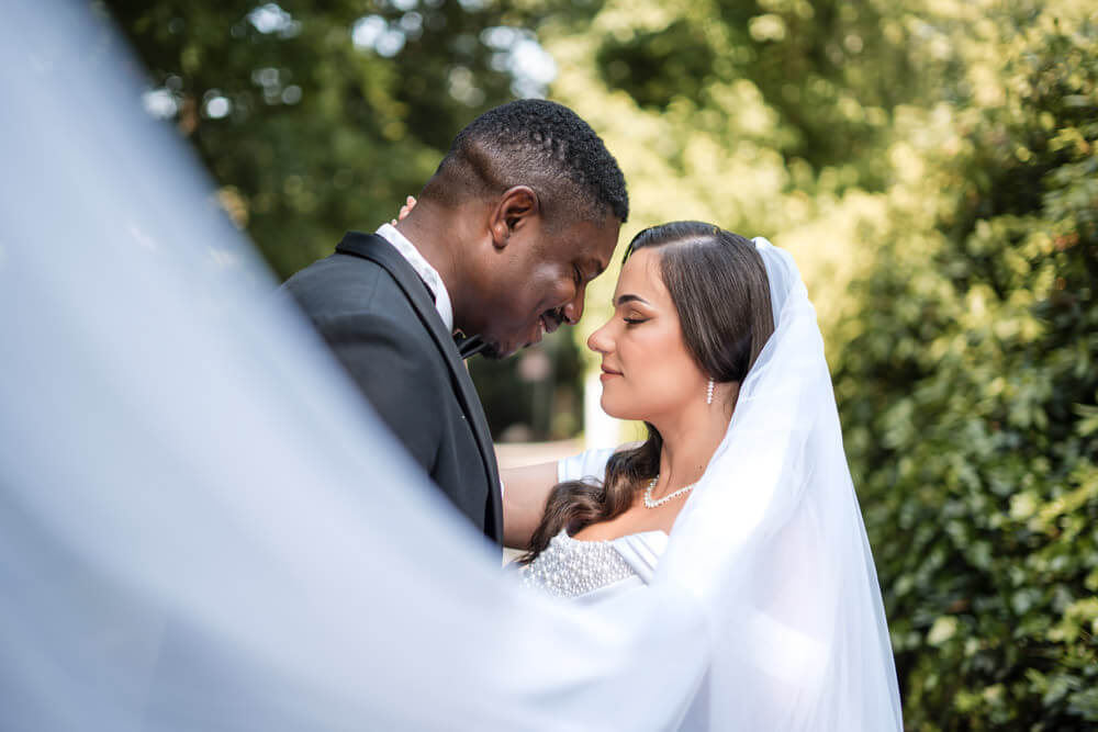 Als Daniella schließlich erschien, wurde es ganz still. Sie trug ihren Schleier traditionell vor dem Gesicht, während sie den Weg durch die Reihen auf Chisom zuschritt. Der Moment, als Chisom seine Braut so auf sich zukommen sah, war pure Magie und rührte nicht nur ihn, sondern auch viele der Anwesenden zu Tränen.