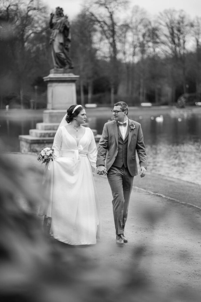 Nach der Trauung wurde mit einem Sektempfang auf das frisch vermählte Paar angestoßen. Anschließend kehrten wir in den Bürgerpark zurück, um Familien-, Freunde- und Paarfotos zu machen. Die weitläufigen Grünflächen und die natürliche Schönheit des Parks boten eine ideale Kulisse für authentische Hochzeitsbilder. Der Bürgerpark ist eine der beliebtesten Locations in Bremen für Hochzeiten – und das aus gutem Grund!